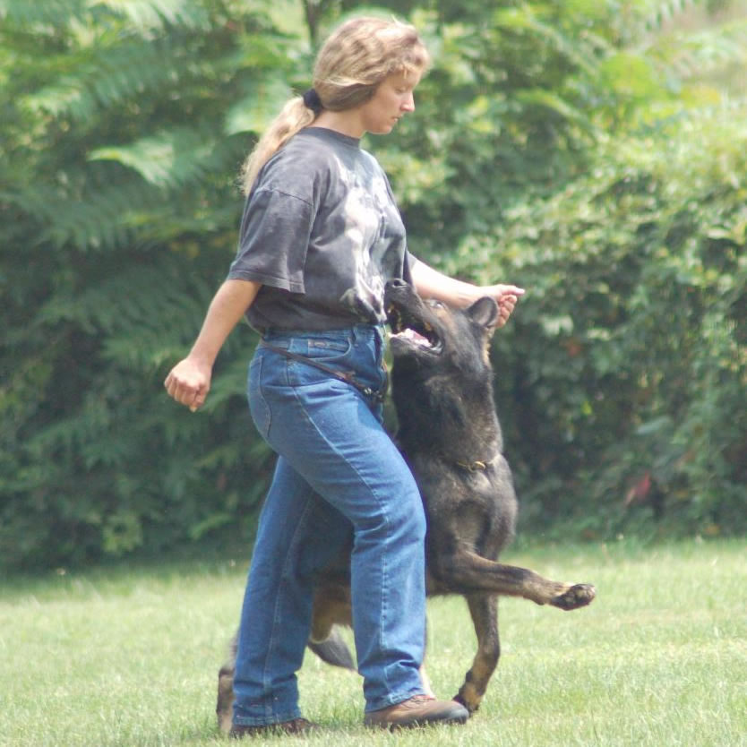 Molly Graf grew up in a military family, moving frequently and traveling throughout the US and Europe. Animals were always a part of the Graf family, including a tri-colored Collie named Angel, with whom Molly spent her first 14 years. As a young adult, Molly's constant companion was a Shepherd mix who was smuggled into Wilson college with her and then accompanied her after graduation into her professional life as the manager, riding instructor, horse trainer, student host of local Foxhunting, show groom, and horse transportation of Randolph-Macon Women's College Riding Center in Lynchburg, VA, then Sugar Hill Farm in Crozet, VA. In 1996 she started her own Pet-sitting, dog training and boarding business in Charlottesville, VA until 2004 when she moved to Carlisle, PA, her current home. In 1992 she became interested in the sport of Schutzhund when her dog club hosted a Schutzhund demonstration. Molly immediately bought her first German Shepherd, Ayla V Haus Cruser, whom she trained to the Schutzhund 3 level as well as several AKC Obedience and Tracking titles.